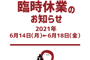 【臨時休業のお知らせ】 【期間:6月14(月)〜6月18(金)】 …